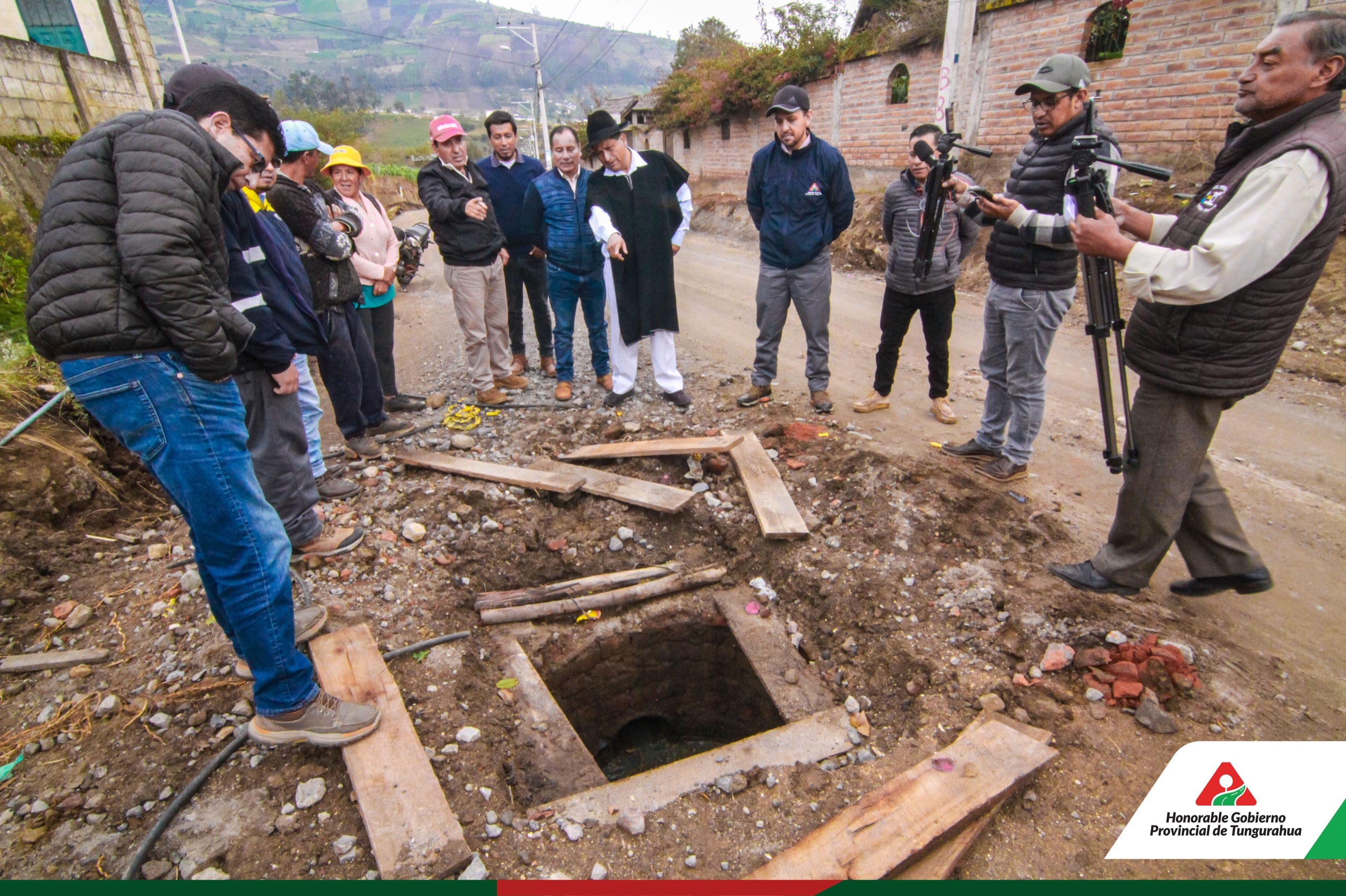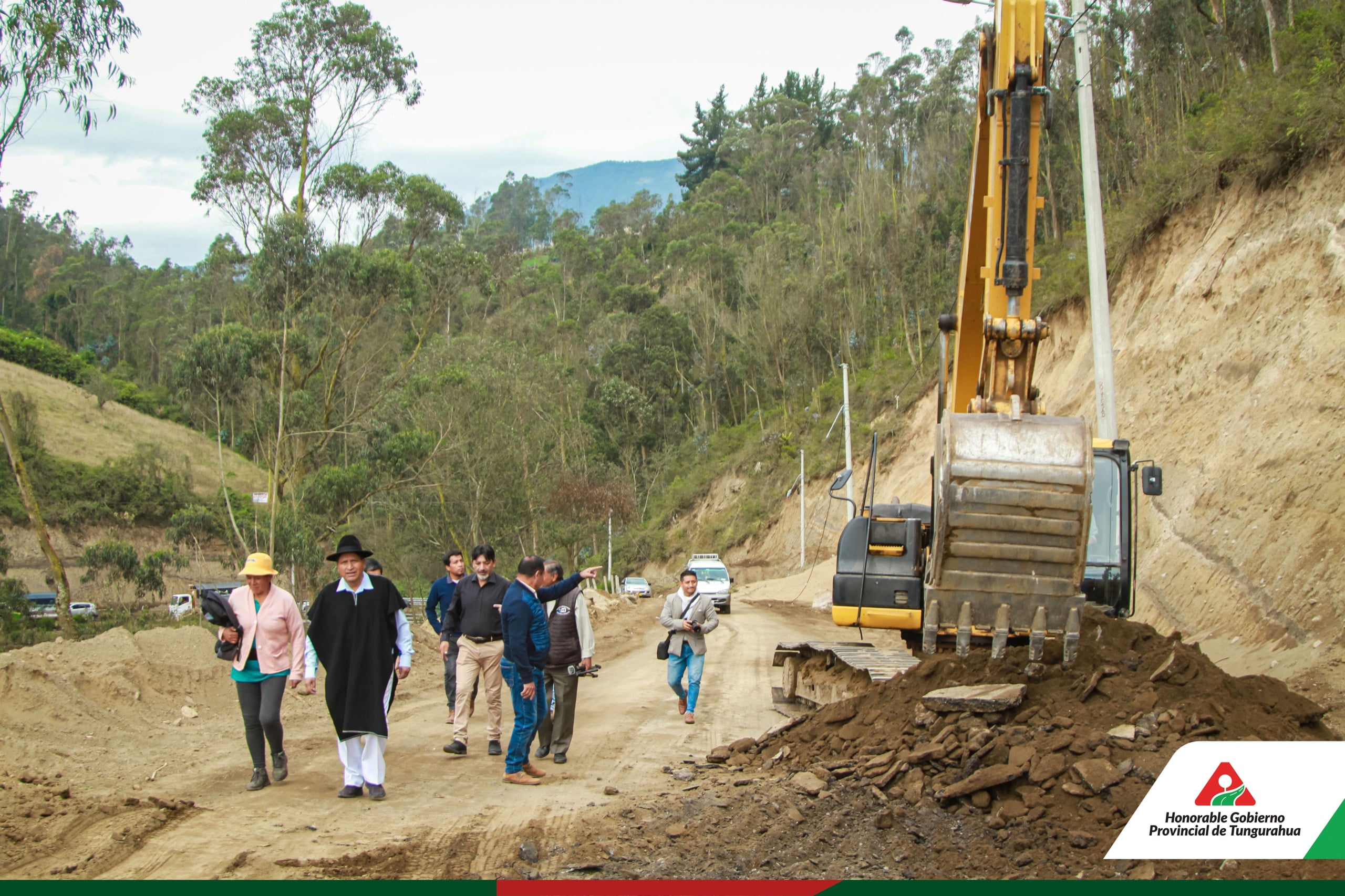 El Prefecto Manuel Caizabanda, el Alcalde Gabriel Zúñiga, Concejales de Pelileo y autoridades parroquiales se reunieron para evaluar el progreso de los trabajos en la Red Vial Tungurahua en el cantón Pelileo.