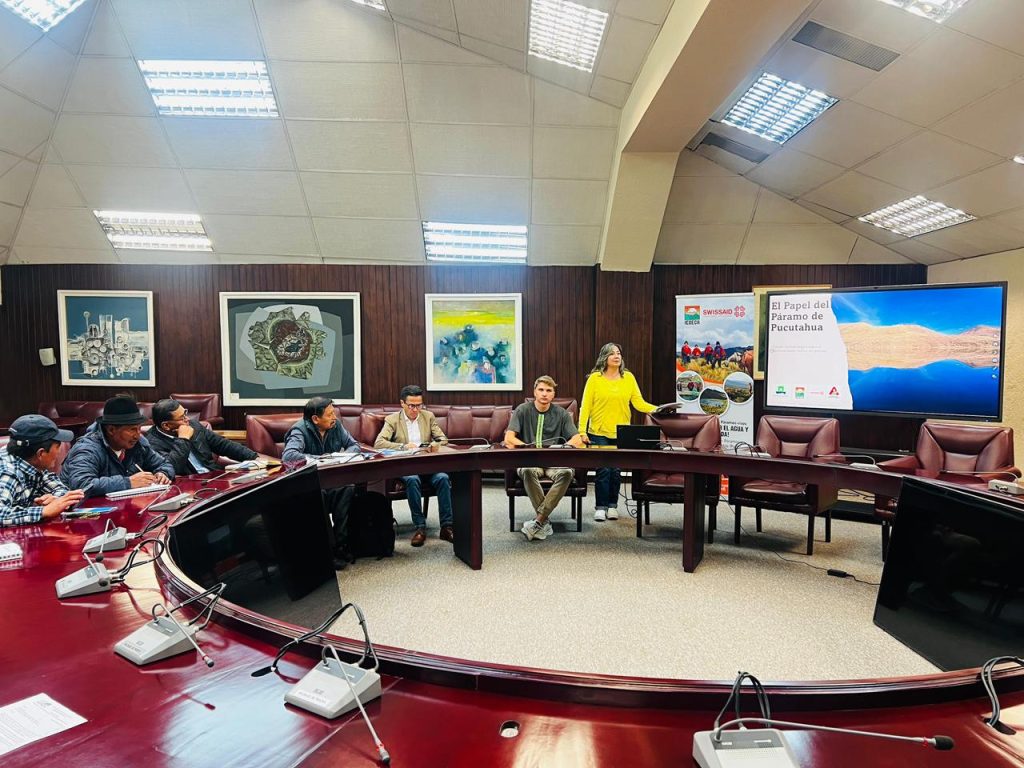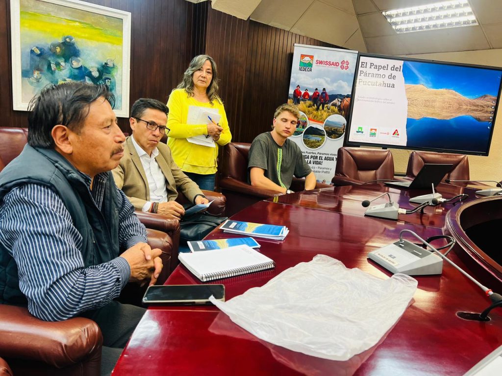 Durante el encuentro, representantes del Gobierno Provincial de Tungurahua, como la Ing. Hipatia Hinojosa y el Ing. Darío Llamuca, destacaron el valor de esta investigación como un aporte técnico y humano que fortalece las acciones de conservación. Los custodios de Pucutahua reafirmaron su compromiso con la protección de este territorio, mientras que IEDECA–SWISSAID reconoció la dedicación del investigador. En este contexto, se ratifica que el páramo actúa como una esponja natural que capta, almacena y libera agua, recordando que protegerlo es asegurar la vida para toda la provincia.