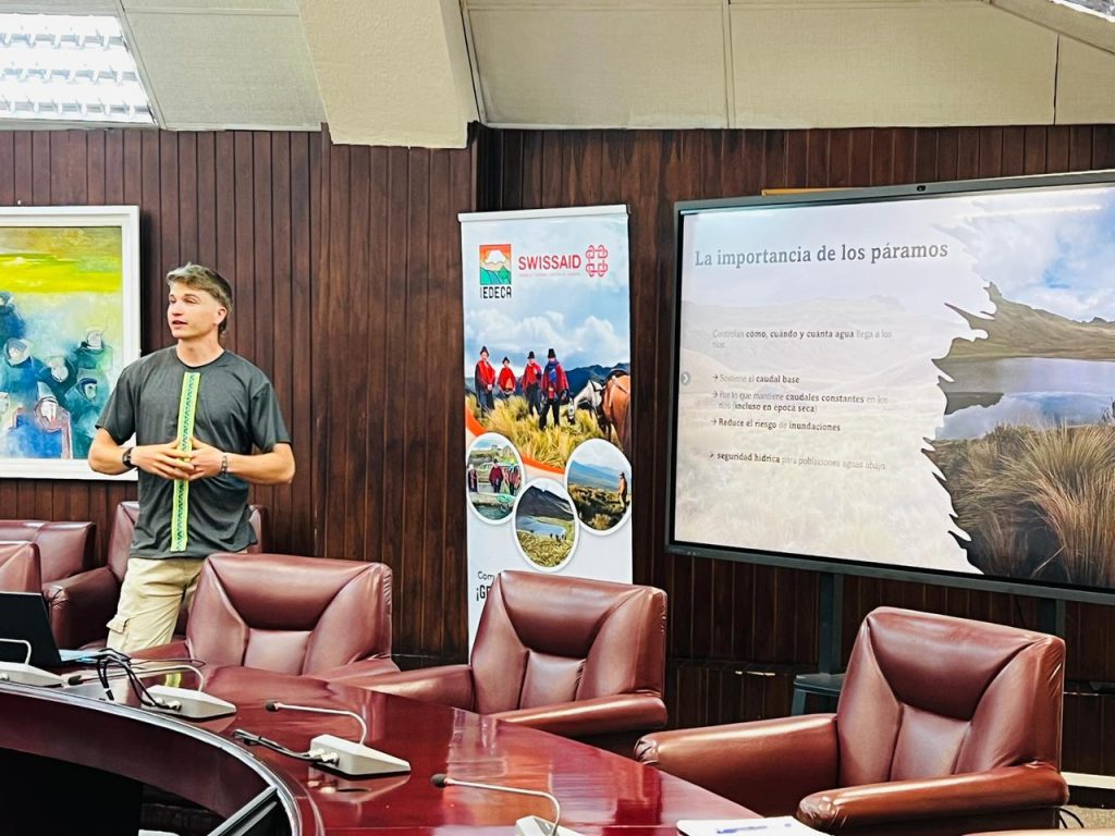 El estudio, desarrollado en el marco del proyecto “Páramos y Biocorredor Sustentable – PaBS”, fue presentado por Thys Stilma, tesista de la Universidad de Wageningen (Países Bajos). El investigador destacó que la regulación hídrica no depende únicamente de la naturaleza, sino también del compromiso de quienes habitan y protegen el entorno: “Fortalecer ambos aspectos es garantizar la seguridad hídrica”, señaló, resaltando la corresponsabilidad entre comunidad y ecosistema.