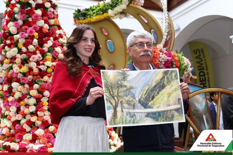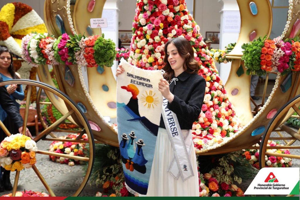 El Museo Provincial Casa del Portal, emblemática casa patrimonial de Ambato, acogió la bienvenida a Fátima Bosch, Miss Universo, en el marco de los eventos oficiales por las Bodas de Diamante de la Fiesta de la Fruta y de las Flores. Este histórico espacio, que resguarda la memoria cultural de la ciudad, se convirtió en un punto de encuentro de arte, tradición y orgullo tungurahuense, en el contexto de la Exposición Floral y la muestra de arte plástico de artistas locales.
