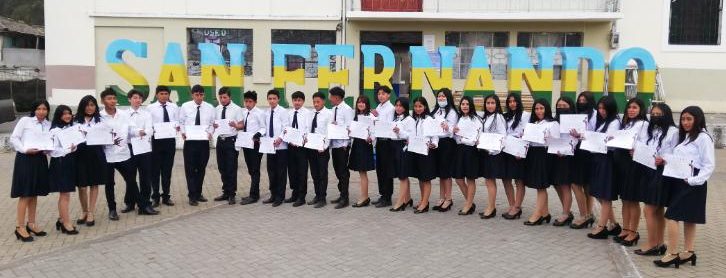 30 jóvenes concluyeron el proceso juvenil que se desarrolló en la parroquia San Fernando con las temáticas de desarrollo humano, comunidad y responsabilidad, derechos sexuales y reproductivos, participación ciudadana y liderazgo, cumpliendo 40 horas, con el aval de la Universidad Técnica de Ambato, además este proceso fue gratuito, de participación y aprobación.