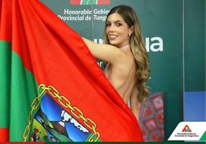 Ana Isabel Cobo, representante de Tungurahua en el certamen Miss Universo Ecuador. Su trayectoria como Reina de Ambato y su labor social en beneficio de los sectores vulnerables de la provincia han sido reconocidos. La entrega de la Bandera de la Provincia por parte de Carlos Tabares, Director de Recursos Hídricos y Conservación Ambiental, es un símbolo del apoyo y respaldo de la comunidad.